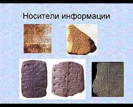 Теперь посмотрим, выглядели носители информации древности. (Демонстрация слайдов).