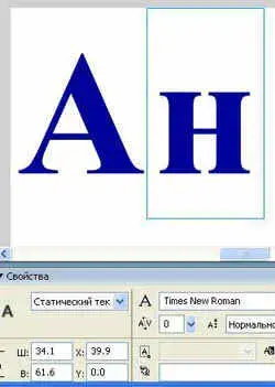 6. Для того, чтобы в анимации буквы в разных кадрах располагались на одной линии, воспользуемся инспектором объектов. Для этого выберите инструмент Стрелка и кликните левой клавишей мыши на букве А. Чтобы оптимизировать площадь заголовка, задайте нулевые координаты в строках X и Y. Буква А будет размещена в самой верхней левой точке основной сцены. <Рисунок3>