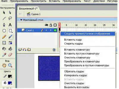 2. В 1-м ключевом кадре - создать промежуточное изображение.