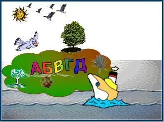 Ведущий. Ребята, сегодня совершим с вами путешествие на остров, у которого совсем необычное название: АБВГДйка. Посмотрите, кто же нас встречает на этом необычном остове?