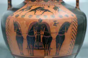 Репродукции картин: Леонардо да Винчи "Мадонна в гроте" <Рисунок0>, "Тайная вечеря" <Рисунок1>, Виктор Васнецов "Богатыри" <Рисунок2>, Рафаэль "Сикстинская мадонна" <Рисунок3>, Н. Пуссен "Аркадские пастухи" <Рисунок18>, западный фронтон храма Зевса в Олимпии многофигурная композиция "Борьба лапифов с кентаврами в присутствии бога Апполона" <Рисунок4>, <Рисунок04>, росписи ваз <Рисунок9>, <Рисунок10>, <Рисунок11>, <Рисунок12>.