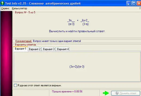 Обучающимся предлагается пройти контрольное тестирование на сложение и вычитание алгебраических дробей, автоматически получить оценку.