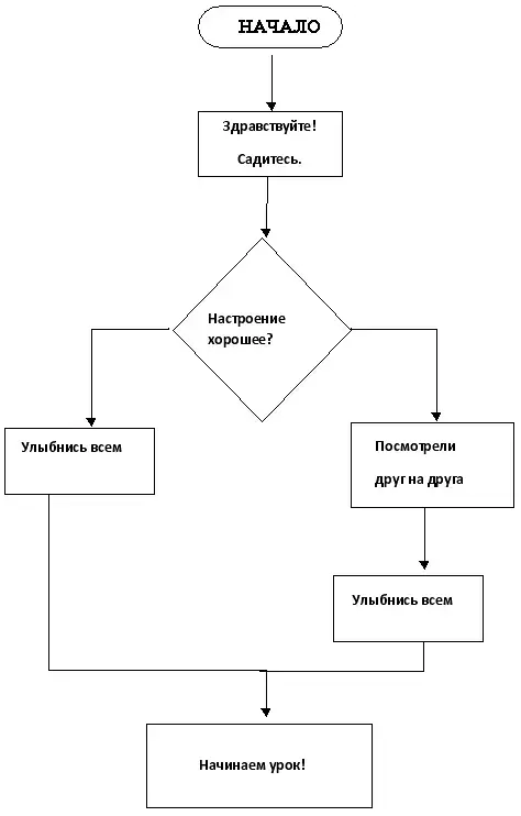 2) формирование умений устанавливать соответствие между командами алгоритма, записанного словесно, и элементами блок-схемы;