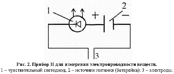 2. Более простым прибором для регистрации электропроводности веществ является прибор с чувствительным светодиодом <Рисунок 2> .
