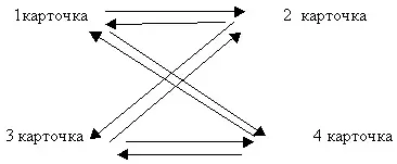 В начале работы с классом по технологии КСО, каждому ученику предлагаю изучить алгоритм работы по методике А.Г. Ривина, В.К. Дьяченко На первом этапе работы обучаю учащихся работе с текстами. На втором этапе обучения предлагаю учащимся работу со специально подготовленными карточками. Учащиеся в тетрадях записывают свое задание. На доске изображаю схемы движения маршрутов, по которым двигаются учащиеся. Получив задания, учащиеся садятся в пары и начинают работать (по предложенному маршруту).