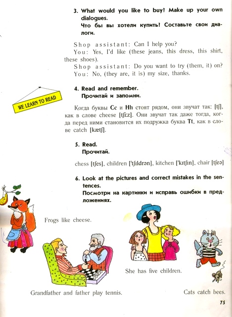 4. Упражнение 3 на странице 75 <рисунок 2> выполняется с целью проверки домашнего задания. Подстановка других предметов одежды осуществляется при помощи дидактических карточек.
