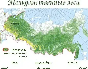 Мелколиственные леса представлены небольшими площадями в лесах европейской части России, особенно на местах пожарищ и лесных вырубок, в Западной Сибири данные леса замещают зону широколиственных лесов.