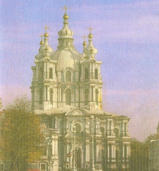 Автором Собора Смольного монастыря (Новодевичьего) является итальянский архитектор Франческо Растрелли. Ему удавались как большие дворцы, так и миниатюрные сооружения. Собор Новодевичьего монастыря Растрелли строил по распоряжению императрицы Елизаветы Петровны. Автор исполнил желание императрицы иметь пятиглавый собор. Украшено архитектурное сооружение с особой пышностью, всё сверкает обилием позолоты на фоне синего неба.