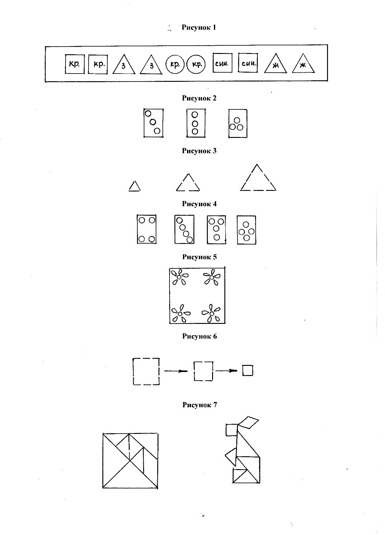 Цель. Продолжить работу с квадратом, делая из него игру "Танграм" и выкладывая силуэты из получившихся фигур. Учить экспериментировать, делать самостоятельно выводы. Развивать воображение, логическое мышление.