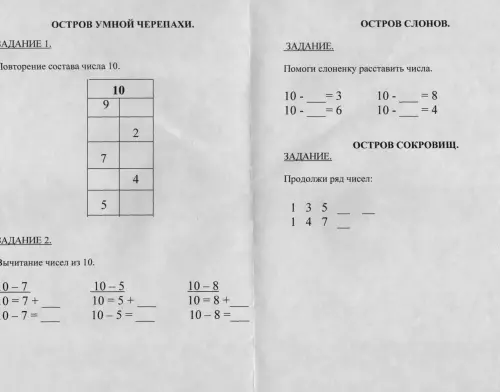 1. Повторение состава числа 10. Наш корабль подплывает к острову, где нас встречает умная черепаха. Она подготовила интересное задание.