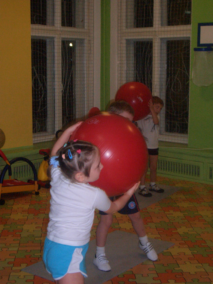 Оборудование: мячи по количеству человек в группе (мяч подбирается с учетом ростовых параметров), коврики по количеству детей, магнитофон, диски, кассеты с музыкой.