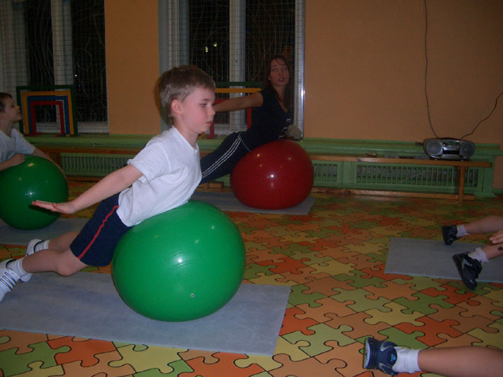 Фитбол-гимнастика - это занятия на больших упругих мячах. Фитбол-гимнастика позволяет решать следующие задачи (Казанская А. В., Пикалева Е. Ю., 2001):