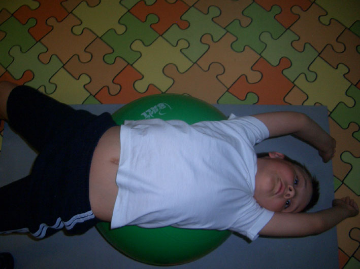 - Лёжа на животе, на мяче, ходьба на прямых руках вперед и назад. Ноги прямые параллельно полу.
