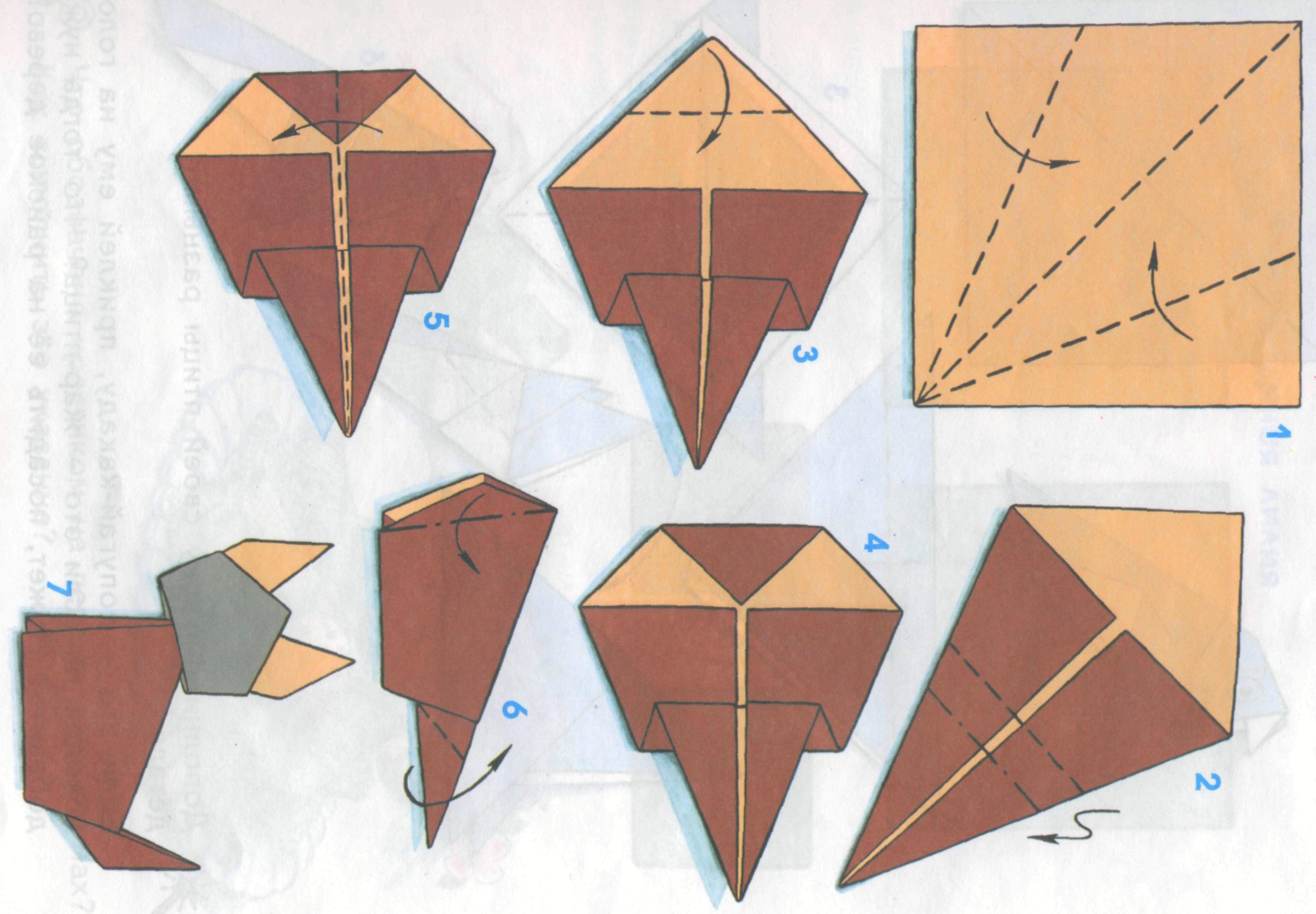 4. Складывание из бумаги "Котёнок" < рисунок 1>.< рисунок 2>.