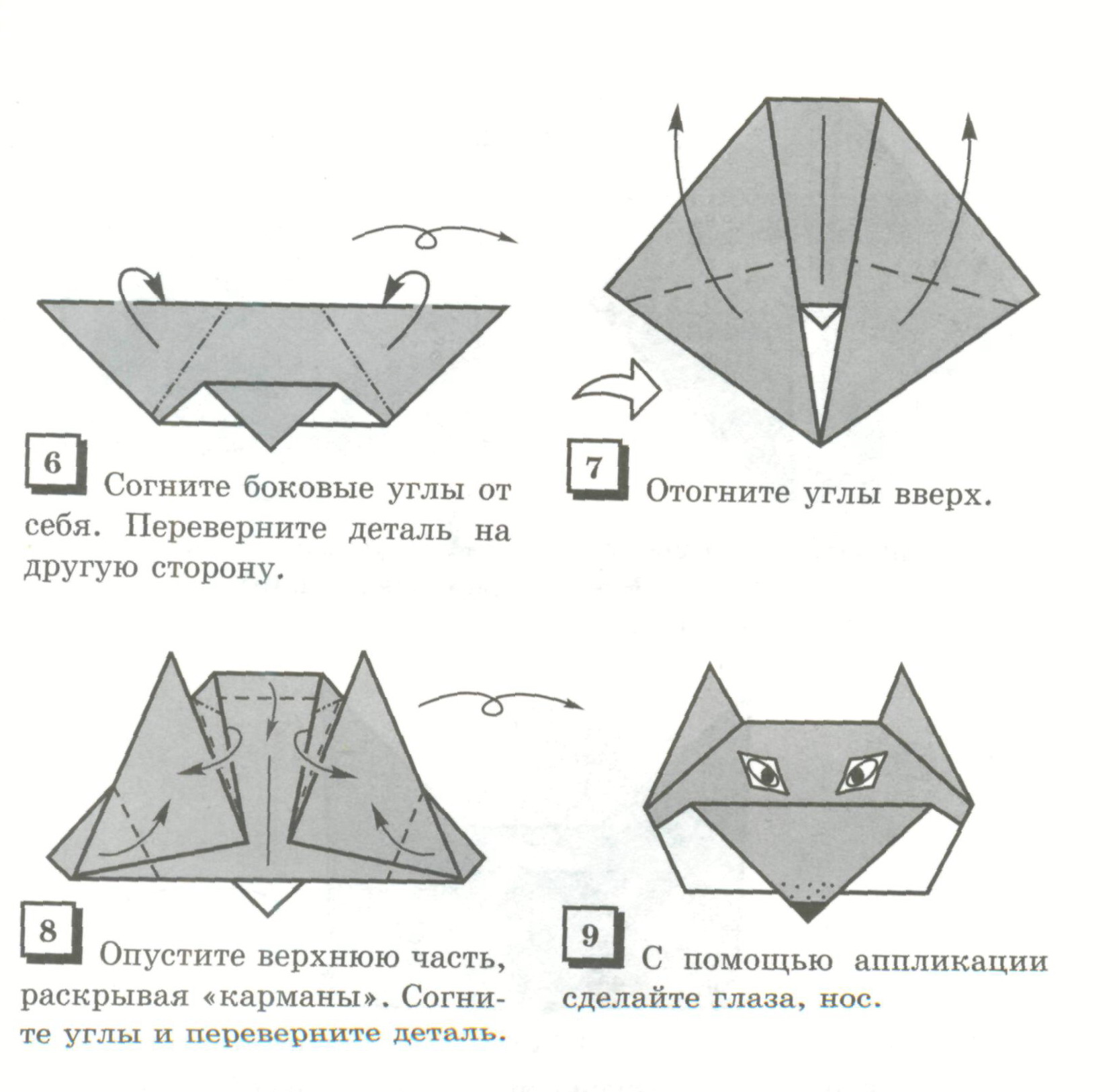8. Складывание из бумаги "Лисёнок" < рисунок 3>, < рисунок 4>
