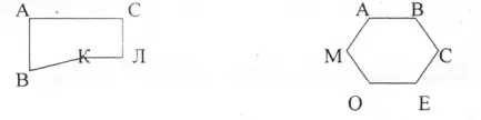 - назовите все вершины и стороны пятиугольника, шестиугольника,