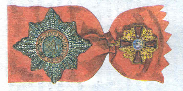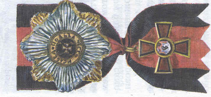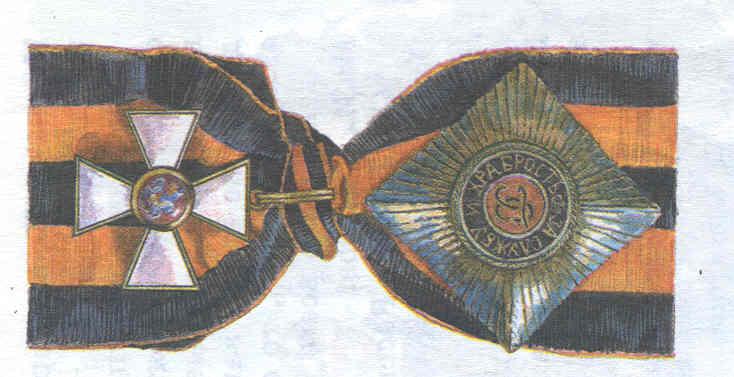 (1. Орден и знак святого Георгия, 2. Орден и знак святого Андрея Первозванного, 3. Орден и знак Александра Невского, 4. Орден и знак святого Владимира)