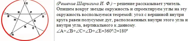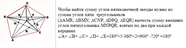 Докажите, что сумма углов пятиконечной звезды равна 180 градусов.