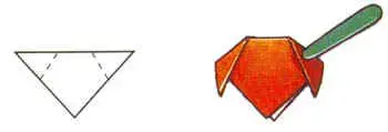 г). Раскроем заготовку, маленькие треугольники внизу спрячем внутрь, прогладим.