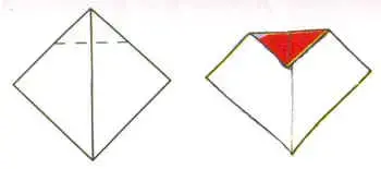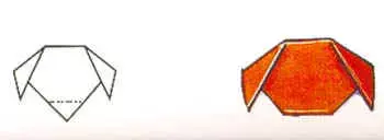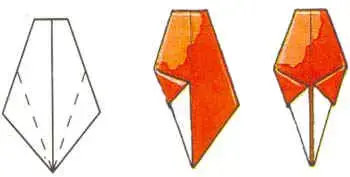 А теперь отогнём к середине левый и правый углы внизу заготовки.