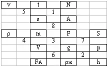 а2-а7 Смесь газов, составляющая атмосферу./ б4-б7 Мера взаимодействия тел./ в5-в10 Единица измерения силы./ г4-г8 Величина, измеряемая взвешиванием./ д2-д6 Тысячная часть килограмма./ е1-е8 Мелкая