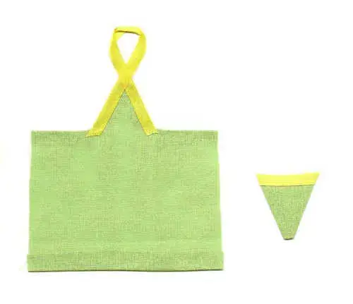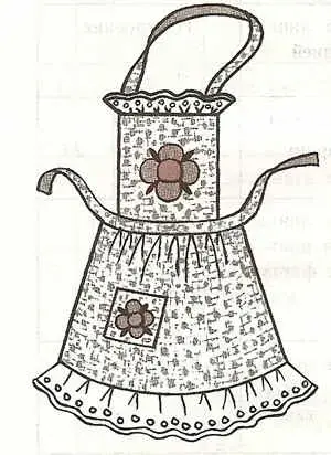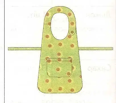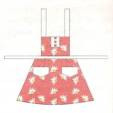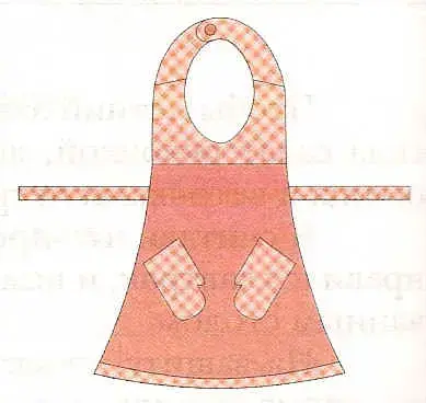 - Если фартук шьется из пестрой ткани, отделку следует сделать одноцветной, причем она должна совпадать с одной из красок ткани.