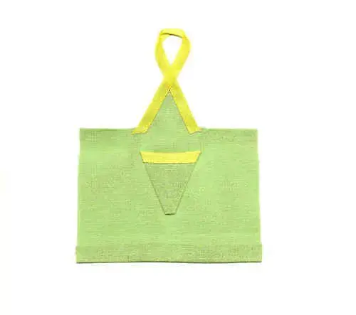 7. Пришейте тесьму на нагрудник и карман, сделайте из тесьмы бретель.