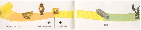 В первой теме мы отправимся по ленте времени. Вы, конечно, знаете, что историческое время можно разделить на тысячелетия, века и годы. На «ленте времени», которую вы видите на этой странице, художник обозначил исторические события, происходившие на земле Кубани.