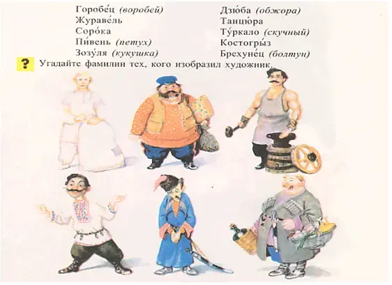 А сейчас поиграем в игру «Угадай фамилию» Я буду показывать картинку с изображением человека и называть возможные фамилии, а вы выберете ту, которая больше подходит ему.