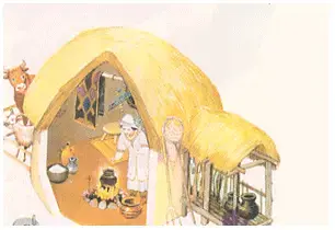 Листаем книгу дальше! Давайте вспомним и отметим на «ленте времени» отрезок, когда на Кубани жили меоты. Молодцы- в 1 тысячелетии до н.э. А вот их жилище. Как и из чего строили жилище меоты, а позже казаки вы узнаете из темы «история в архитектурных памятниках».