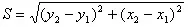 Длина отрезка прямой, соединяющей две точки A (x1,y1) и B (x2, y2), определяется формулой