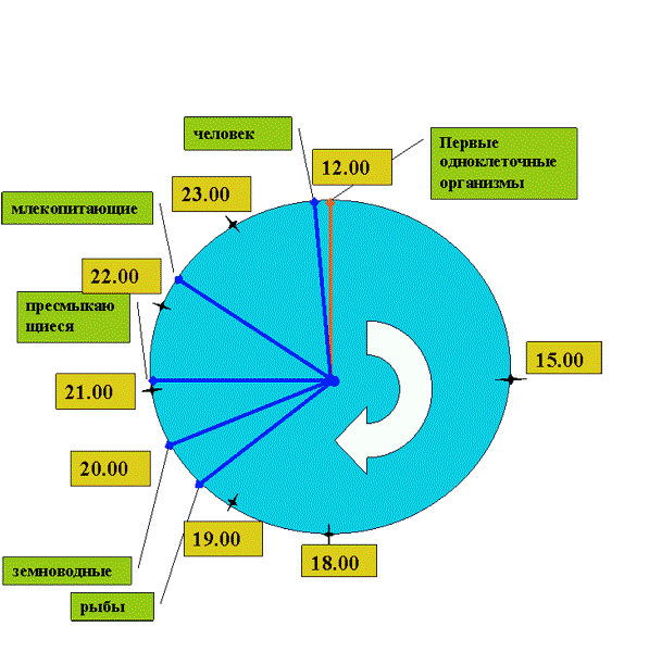 Как видим, из всего времени в 24 часа человек своим появлением и развитием занимает всего полторы минуты (три миллиона лет). А остальное время Природа развивалась без человека, до него. Как шло это развитие?