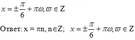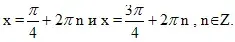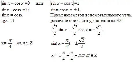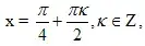 Решение. Уравнение равносильно sinx = ± cosx ![]()