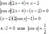 Решение. Правая часть уравнения неотрицательна, значит, неотрицательна и левая часть, тогда 2х-4≥0, 2(х-2)≥0 , х-2≥0. Если х-2≥0. то при раскрытия правого модуля по
