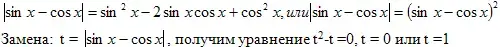 (оба уравнения удовлетворяют условию sinx≥0)