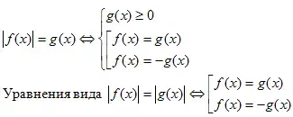 Согласно этому определению, в уравнениях модуль можно раскрывать следующим образом: