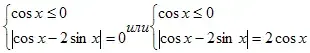 Решая уравнение первой системы получим: cosx-2sinx=0