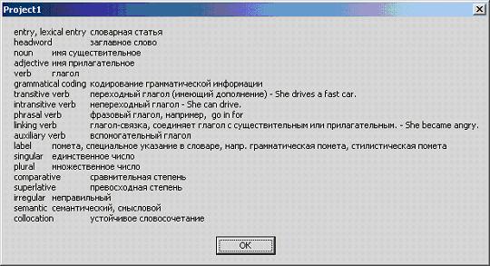 - "Структура словарной статьи" - "Lexical Entry", при написании которой использованы материалы книги Л.В. Минаевой "Лексикология и лексикография английского языка", изданной в 2003 году;