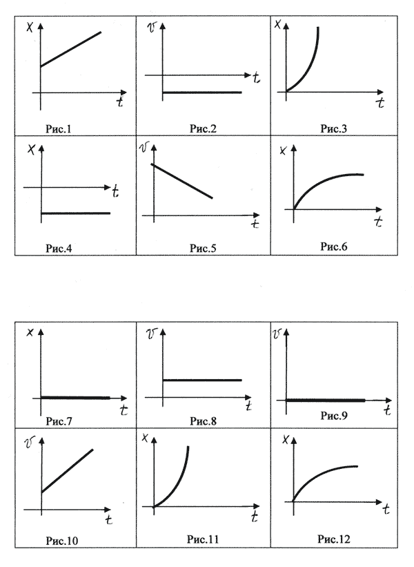 Ф: Перед вами лежат две тест-таблицы <Приложение 1>, на которых изображены графики различных движений. Ваша задача - указать графики, описывающие: