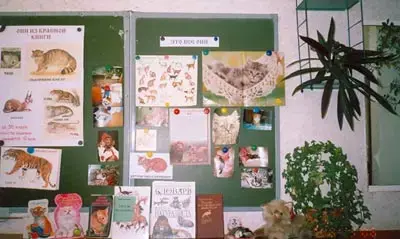 Оборудование:экспозиции, выполненные на больших плакатах "История одомашнивания кошки", "Породы кошек", "Родственники кошки", "Они из Красной книги", выставка "Это все они", (рисунки, поделки учеников), жетоны с изображением животных из семейства Кошачьих.
