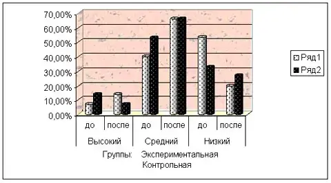 Анализ сравнительных данных <Рисунок 1> позволил сделать вывод о том, что в экспериментальной группе произошли существенные позитивные изменения. В контрольной группе, где не проводилась система занятий по формированию положительного отношения к учебной деятельности посредством аппликации и не были созданы соответствующие условия, динамика незначительная.