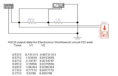 ASCII output data for Electronics Workbench circuit 222.ewb