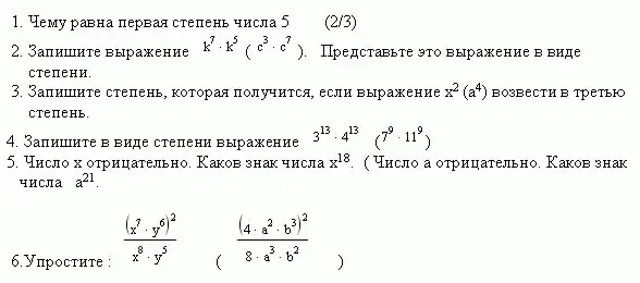 - отработать умение и навыки применения свойств степеней при решении типовых задач и заданий более сложного уровня;