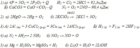 | Б) соединения, гомогенная. | Б1) H2SO4 + BaCl2 → BaSO4 + 2HCl + Q |