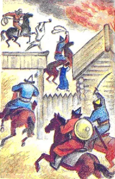 Нападение кочевников на славянский посёлок.