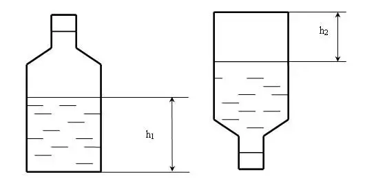 Необходимо, пользуясь только масштабной линейкой определить объем бутылки, которая частично наполнена жидкостью. Дно бутылки предполагается плоским. Выливать и доливать жидкость не разрешается.