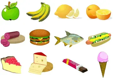 - I like sausage, an ice-cream, an apple, a lemon, a piece of cake and some cheese.