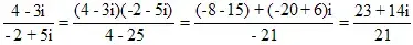 Пример: (4 - 3i) (-2 + 5i) = (-8 + 15) + (20 + 6)i = 7 + 26i