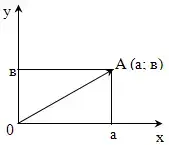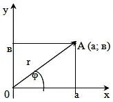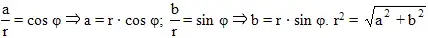 с координатами (а; в). Обозначим длину этого вектора через r, а угол, который он