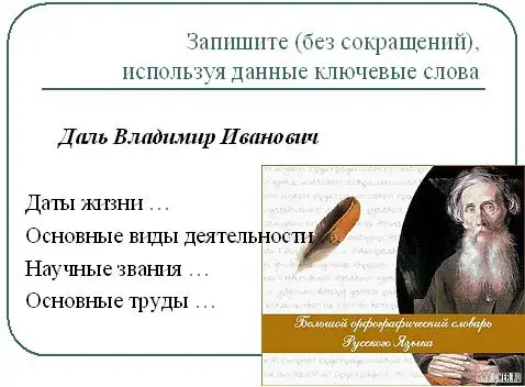 Очень много людей трудилось над созданием этих разных словарей, вкладывая душу, отдавая знания и время. Среди них был человек с удивительной биографией и судьбой - В.И.Даль.